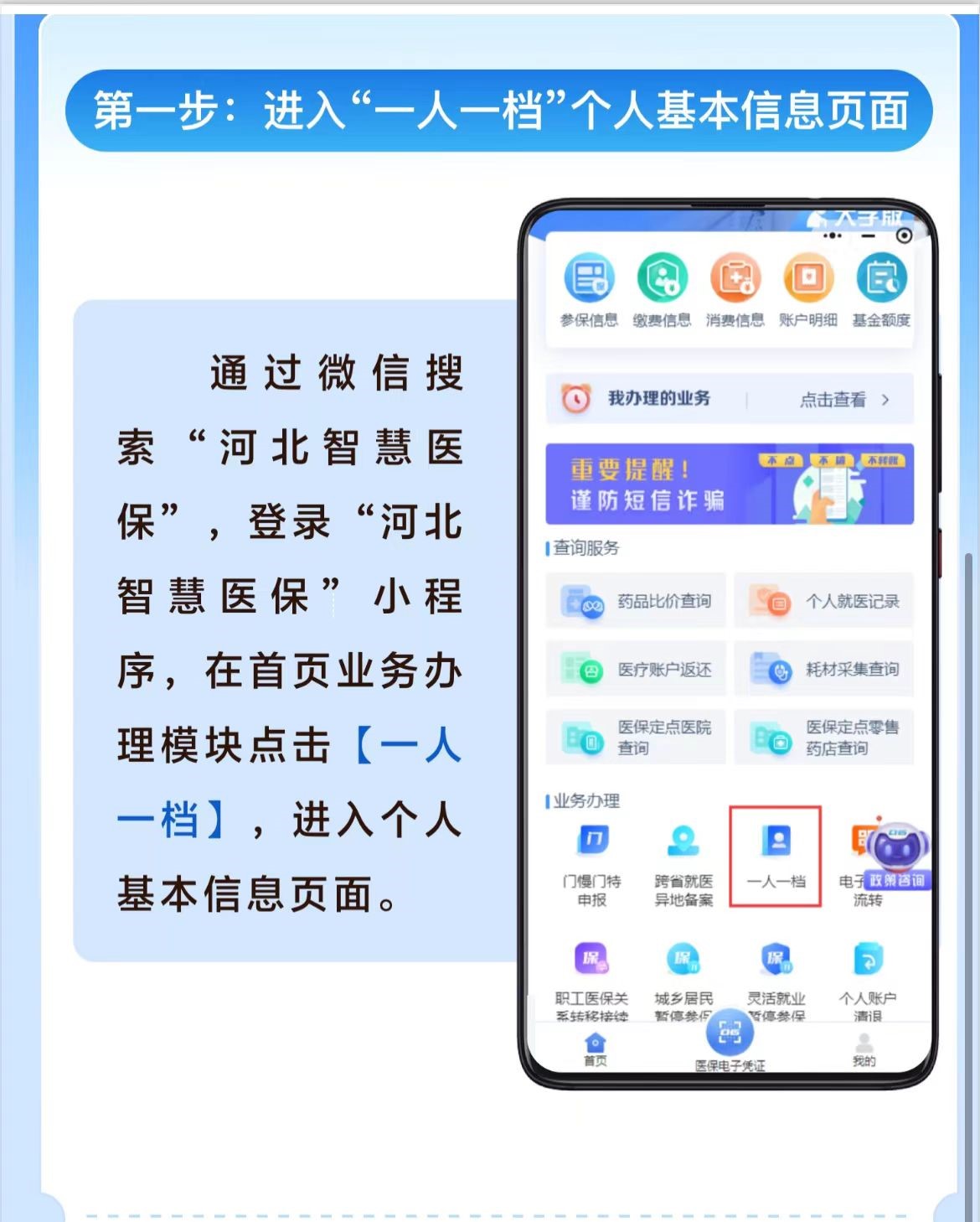 “一人一档”信息库是参保人享受医保待遇的核心依据,信息准确无误至关重要,将直接关系到参保人未来就医结算、个人账户划拨、异地就医备案、医保关系转移接续等业务的顺畅办理。