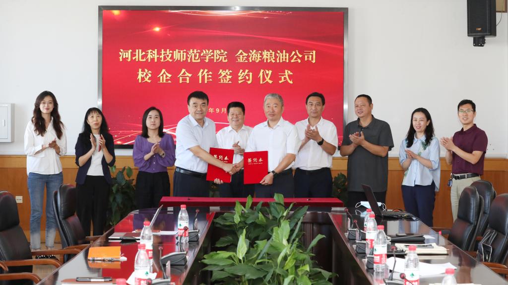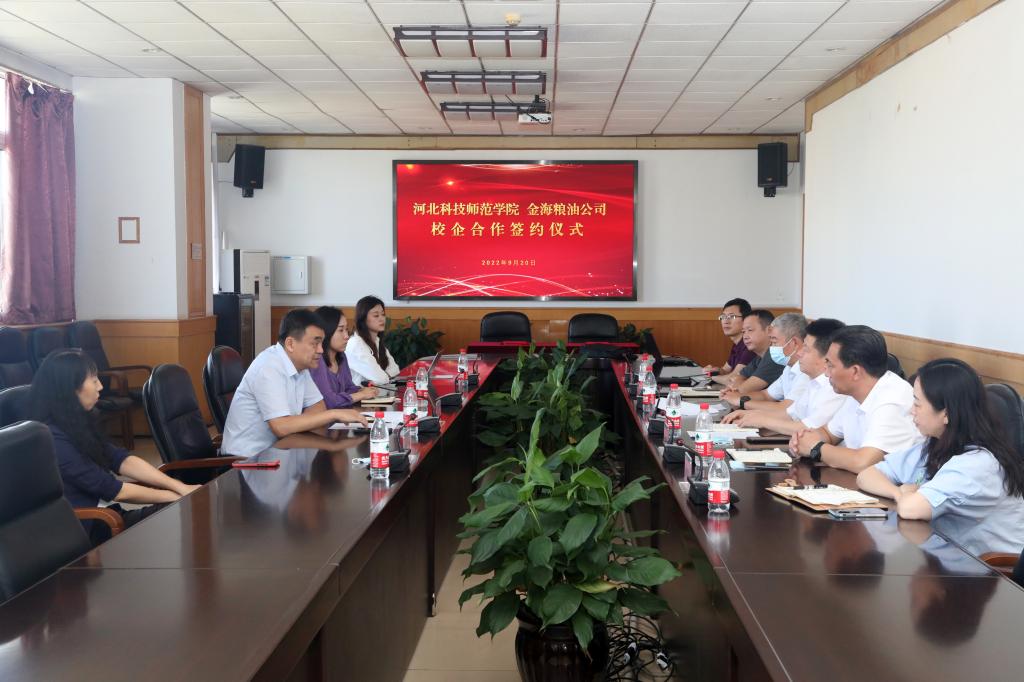9月20日上午,永利与金海粮油公司合作协议签订仪式在秦皇岛校区举行,学校党委常委、副校长冯瑞银出席签约仪式并致辞。秦皇岛金海粮油、特种油工业有限公司副总经理杜若辉,益海嘉里集团招聘经理张诗偲,秦皇岛金海粮油、特种油工业有限公司人事行政部高级经理谢薇等与永利教务处、招就处、食品科技学院等部门负责人一起参加了签约仪式,签约仪式由食品科技学院院长李军主持。