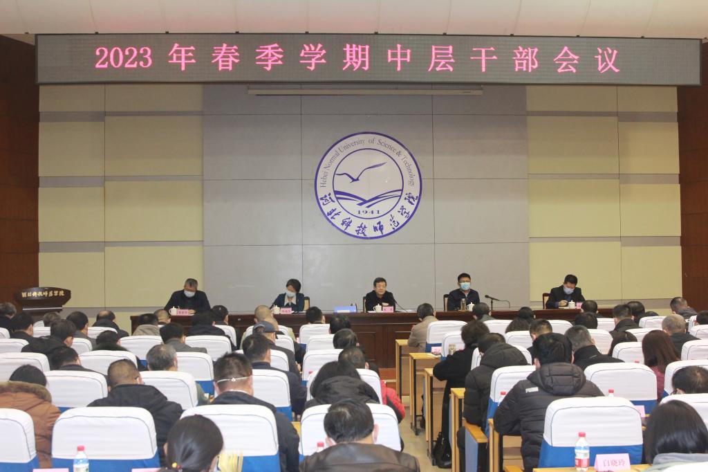 2月23日下午,永利在秦皇岛校区学术交流中心召开春季学期中层干部大会,进一步统一思想、凝心聚力,确保2023年各项工作起好步、打好底、开好局。校党委书记朱勇在会上讲话,校党委副书记、校长郭旭涛总结2022年主要工作并部署2023年春季学期重点工作。校领导杨越冬、冯瑞银、蒋爱林出席会议,全体中层干部参加会议。会议由副校长杨越冬主持。