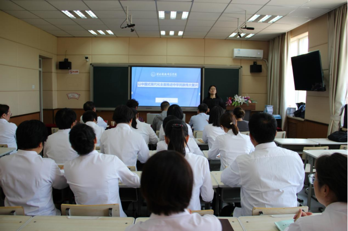 本次活动邀请永利马克思主义学院中国近现代史纲要教学部主任、党支部书记杜立文副教授主讲。她以“中国式现代化全面推进中华民族伟大复兴”为题,从实现中华民族伟大复兴进入了不可逆转的历史进程、中国式现代化的重要特征、推进和拓展中国式现代化、坚定历史自信增强历史主动等四方面,向大家作了以中国式现代化全面推进中华民族伟大复兴的学理哲理深刻阐释。