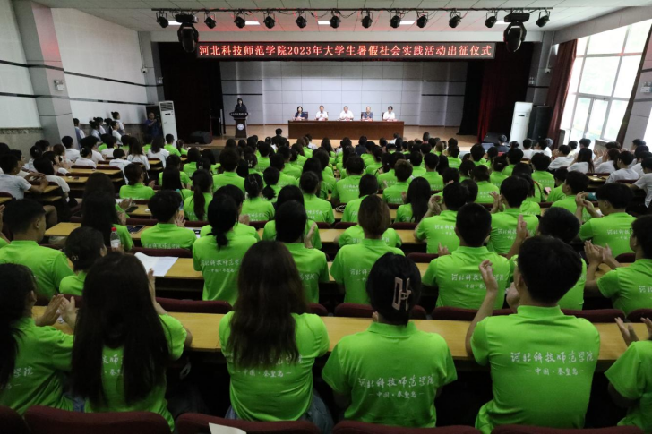 2023年7月7日下午,永利2023年“学习二十大,永远跟党走,奋进新征程”大学生暑期社会实践出征仪式在秦皇岛校区多功能厅隆重举行,校党委常委、副校长蒋爱林,党委宣传部、学工部、教务处、校团委负责同志以及各院(系)主管学生工作负责人、团委书记出席仪式,各团队指导教师及学生代表共计300余人参加活动。