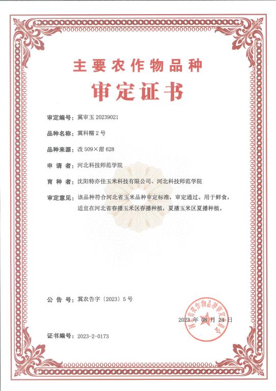近日,永利农学与生物科技学院王健博士领衔的特种玉米育种团队育成的“冀科糯1号”和“冀科糯2号”,通过河北省主要农作物品种审定(公告号:河北省农业农村厅公告2023年第5号),审定编号分别为:冀审玉20230920、冀审玉20239021,这是永利有史以来首次通过省级审定的两个玉米新品种,填补了永利玉米种质创新领域的空白,标志着永利在玉米种质创新方面取得新突破。