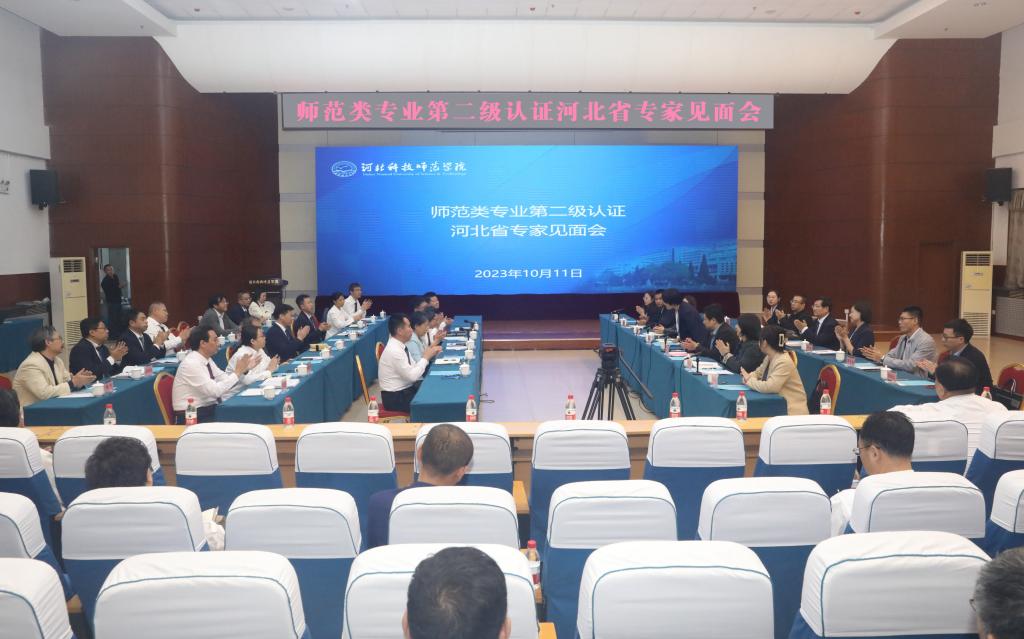 校党委副书记、校长郭旭涛以《以评促建,以评促改,以评促强全面推进师范类专业建设与发展》为题,代表学校作师范专业认证工作报告。报告从科学定位,锚定建设特色鲜明科技师范大学目标;以评促建,全力为区域基础教育培养优质师资;以评促改,确保为区域基础教育输送合格师资;以评促强,力争为区域基础教育打造卓越师资四个方面进行系统阐述。他表示,学校在80余年的办学历程中,始终秉承“敏学、修身、乐业、创新”的校训,紧紧抓住我国高等教育改革和发展机遇,实现了办学规模、办学层次和办学空间的逐步扩展,办学水平和质量的不断提升。同时表示,在建设教育强国的征程中,学校将坚持以习近平新时代中国特色社会主义思想为指导,全面贯彻党的教育方针,落实立德树人根本任务,矢志不渝赓续师范传承、弘扬师范精神、厚植师范情怀、涵养师范文化,为燕赵大地基础教育事业作出更大贡献。