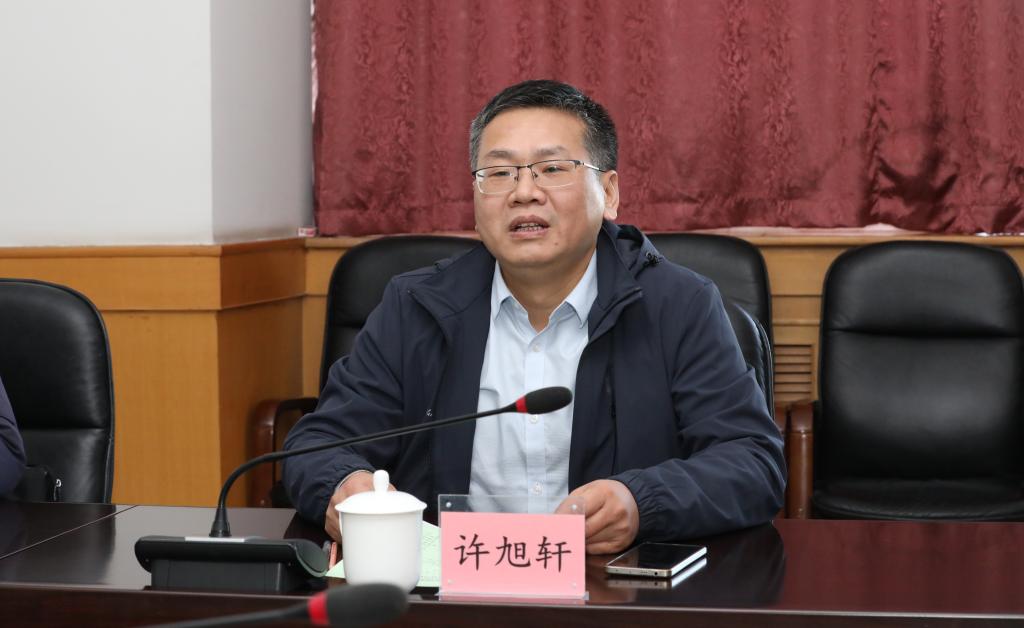 郭旭涛就服务乡村振兴、学校转型发展、升格大学等事宜同许旭轩一行进行了深入探讨与交流。他表示,学校升格大学已列入国家教育部“十四五”发展规划,全校师生正在学校党委的正确领导下,朝着既定目标前进,聚精会神搞建设,凝心聚力谋发展,为办好人民满意教育作出新的贡献;学校会充分发挥农科优势,全力把板栗产业技术教育部工程研究中心办好,办出特色,办出水平;希望校地双方做好信息互通、资源互通,共同为乡村振兴尽最大努力。