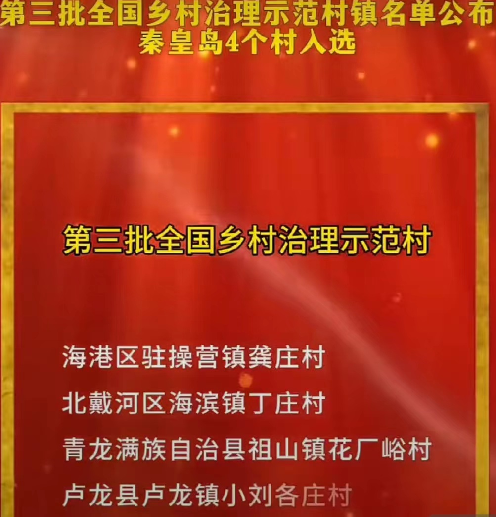 近日,农业农村部网站公布了第三批全国乡村治理示范村镇名单,其中永利技术支撑的秦皇岛市海港区驻操营镇龚庄村获第三批全国乡村治理示范村。