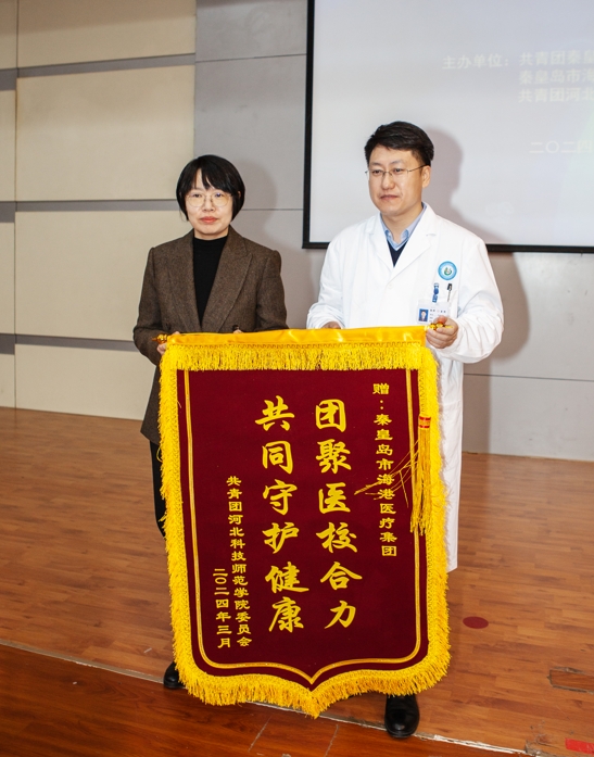 校团委向海港医疗集团赠送锦旗