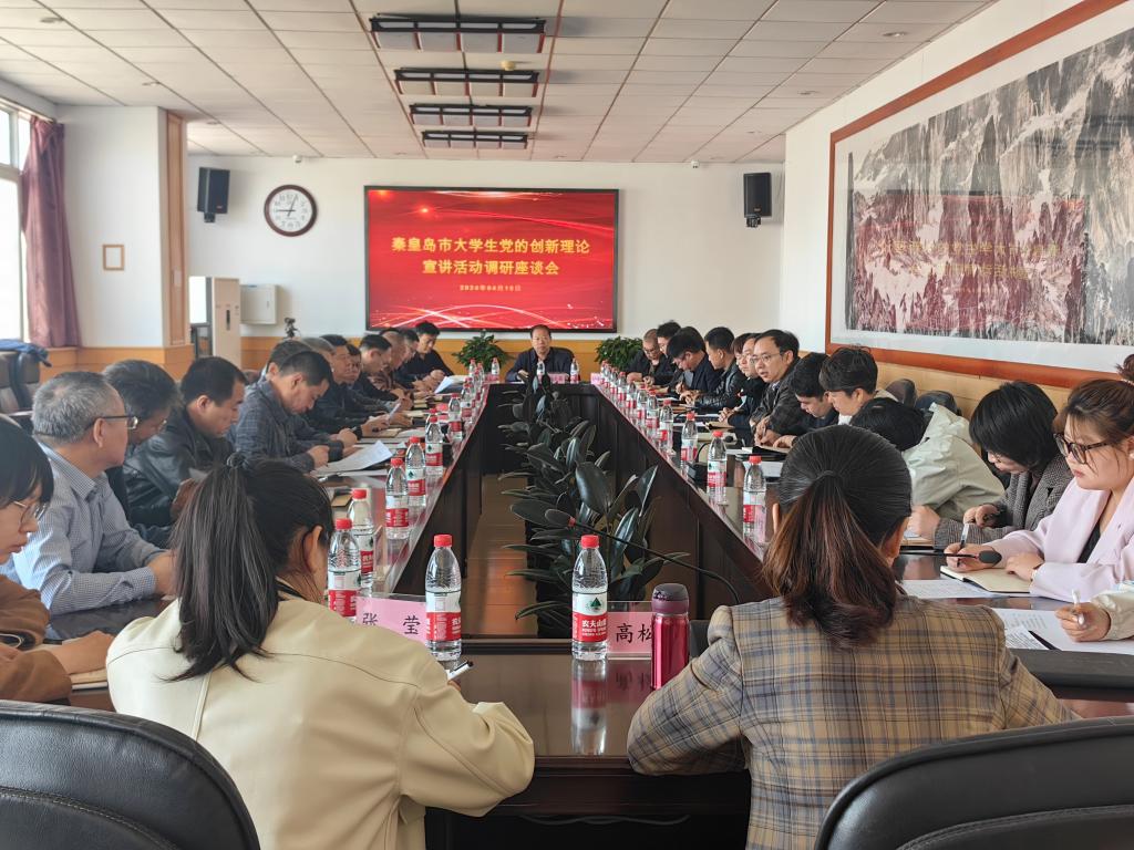2024年4月18日,秦皇岛市大学生党的创新理论志愿宣讲活动调研座谈会在永利秦皇岛校区举办。秦皇岛市委宣传部二级调研员张悦、校党委常委、副校长冯瑞银出席会议。驻秦高校、市属各高校党委宣传部、马克思主义学院相关负责同志,永利学生处、校团委和大学生理论宣讲团学生代表,相关市直单位代表共同参加座谈会。秦皇岛市委宣传部理论科科长、四级调研员张洪涛主持会议。