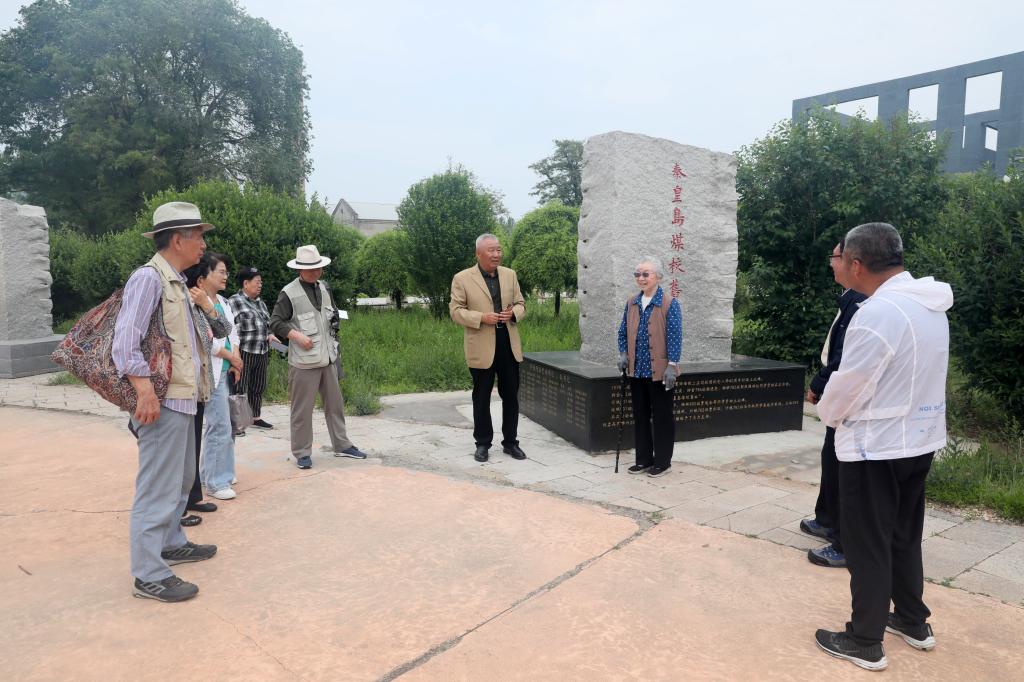 5月21日上午,丁秀珍一行到原秦皇岛煤炭工业管理学校(前身为秦皇岛煤矿工人学校)旧址参访,先后到“秦皇岛煤校旧址”纪念碑、原学校办公及教学区、学生宿舍区等地观访并在曾经住过的学生宿舍前留影。在写有“勤俭办学1958.7.1学生自建”宿舍前,丁秀珍校友深有感触地说:“我们都曾经参加过建设校园的劳动。当时实行‘劳卫制’,每天下午两节课后都要进行劳动和体育锻炼,正是学校的悉心培育,才掌握了工作技能,也潜移默化养成了敢于面对生活苦难的勇气”。永利老领导、原秦皇岛煤校党委书记宋绍富同志提前与柳江地学博物馆的同志进行联络接洽并陪同进行观访。