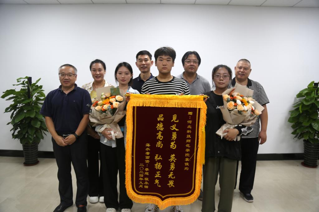 事发后,被救女生与其公司领导、朋友一起,到学校向袁俊灼表示了诚挚的感谢,向英勇青年赠送了锦旗和鲜花。