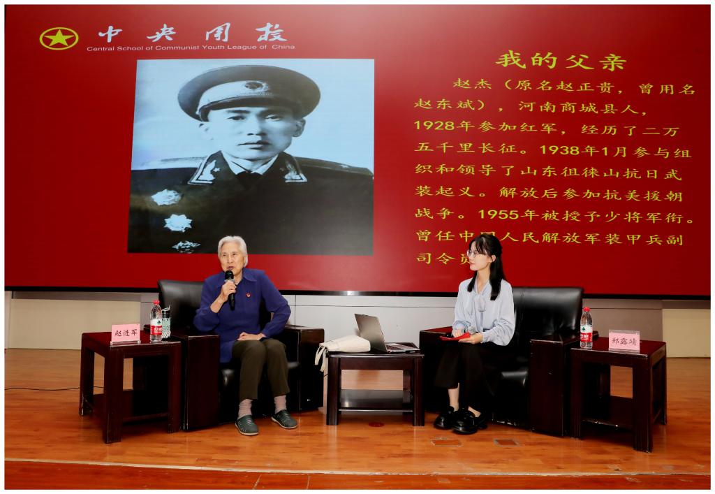 此次活动特别邀请了开国少将赵杰将军的女儿,中央团校赵进军老师,以老一辈革命家后代的独特视角,用真挚的情感为大家讲述了革命先辈对党忠诚、矢志报国的革命经历和鲜为人知的家风家世。赵老师通过讲述父亲赵杰将军身上的九处伤疤、老百姓掩护母亲等八路军战士、父亲六个子女名字的来历、大弟弟赵建军牺牲在援越抗美前线等故事,让大家深切感受到了老一辈共产党人不怕牺牲、忠于使命、时刻听从党召唤的思想境界,革命先辈言传身教的殷实家风。在互动提问环节,赵老师热情鼓励广大青年学子珍惜眼前的优良学习环境,树立报国之志,强调作为学生,当前最重要的任务就是勤奋学习,争做有理想、敢担当、能吃苦、肯奋斗的新时代好青年。