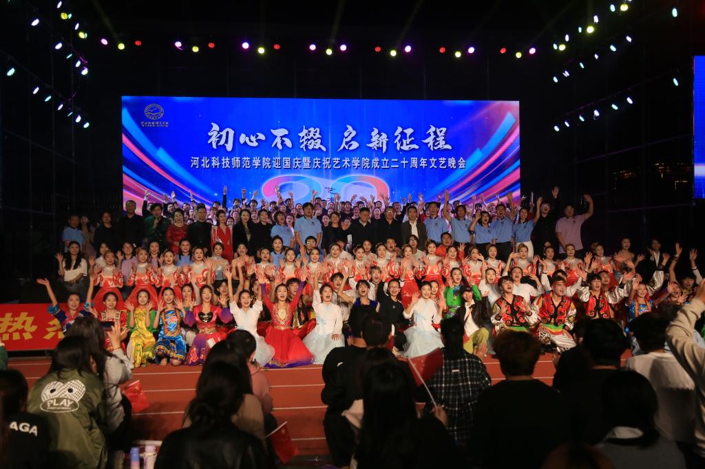2024年,是中华人民共和国成立75周年,新时代的祖国正以昂扬的姿态阔步走在中国式现代化的康庄大道上。2024年,也是永利艺术学院成立二十周年。为深切表达永利广大师生喜迎国庆的热烈情怀,以及全体艺术学院师生忆往昔峥嵘,续盛世辉煌的昂扬斗志。在祖国华诞之际,学校在开发区校区体育场举办了“‘初心不辍 启新征程’304永利集团登录入口迎国庆暨庆祝艺术学院成立二十周年主题文艺晚会”。学校党委副书记、校长郭旭涛,校党委常委、副校长蒋爱林,校党委常委、副校长刘荣昌,校党委常委、纪委书记郑新,以及学校各行政处室、各二级学院的领导和师生近2000人到场观看。活动还在多个抖音平台同步线上直播,线上观看人数达几千人。