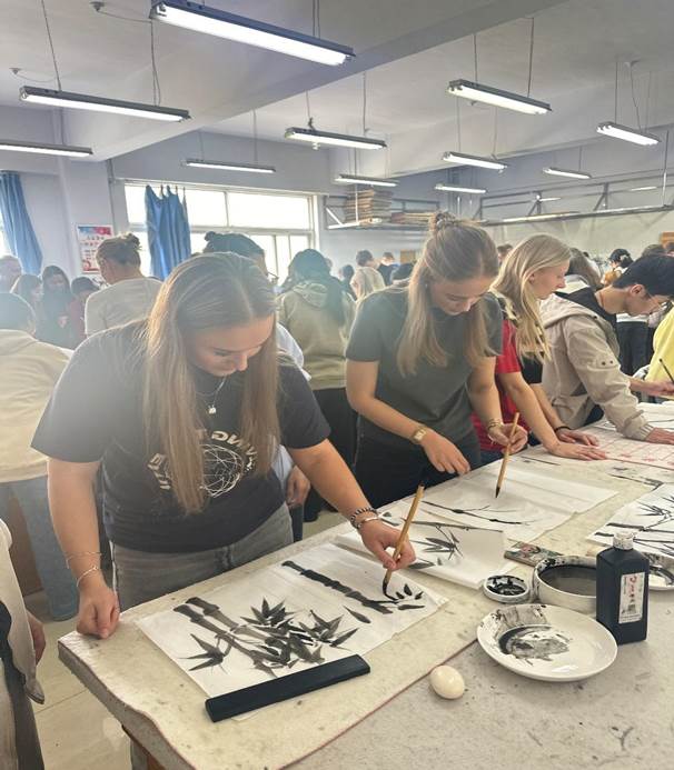 校党委副书记、校长郭旭涛,校党委常委、副校长刘荣昌参加了欢迎丹麦师生到访接待活动。访问期间,丹麦师生带着浓厚的兴趣走进艺术学院课堂,与永利学生一起学习中国水墨山水画,欣赏艺术学院师生为丹麦师生精心准备的传统民族乐器表演,认真学习古筝、二胡、扬琴、琵琶等传统乐器的弹奏技艺。丹麦师生还前往山海关参观了长城博物馆,登上了老龙头和角山长城,欣赏了秦皇岛山海的壮美,真切感受到了秦皇岛深厚的文化底蕴。