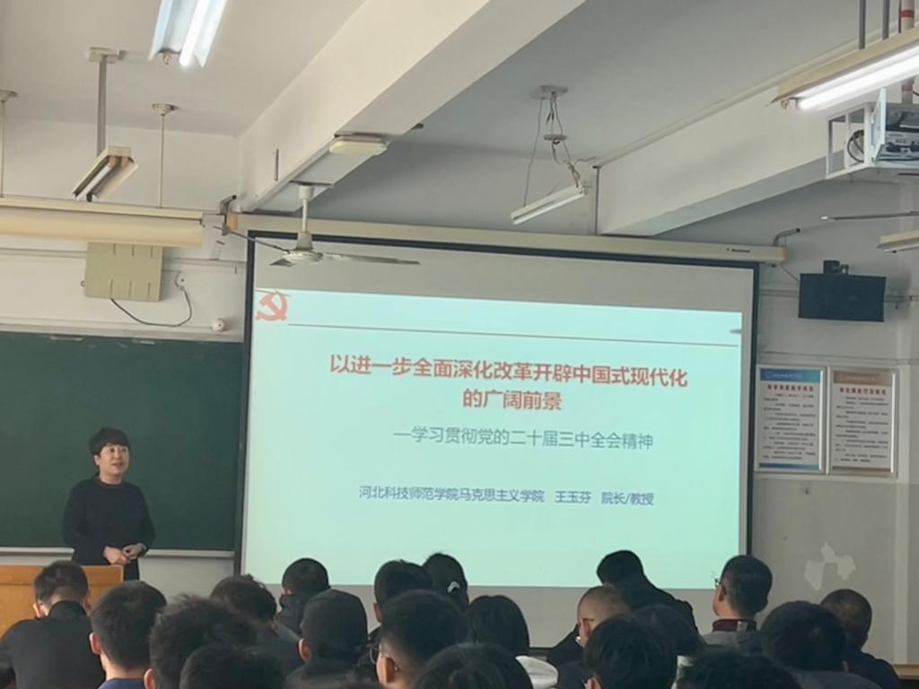 为深入学习宣传贯彻党的二十届三中全会精神,引导师生自觉担当新时代的责任与使命,2024年10月31日,体育与健康学院邀请永利思想政治理论教育宣讲团成员、马克思主义学院院长王玉芬教授为学院作“党的二十届三中全会精神”专题宣讲报告。学院师生党员及学生代表120余人聆听了报告。