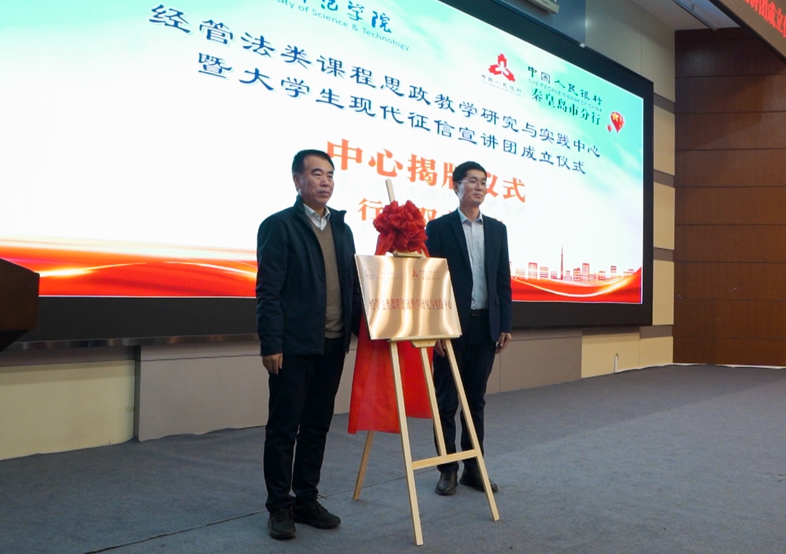 为全面落实党的二十届三中全会提出的“健全诚信建设长效机制”“弘扬社会主义法治精神”有关精神,落实好立德树人根本任务,2024年11月29日,304永利集团登录入口联合中国人民银行秦皇岛市分行共同成立的“经管法类课程思政教学研究与实践中心”正式揭牌。学校党委常委、副校长刘荣昌出席揭牌仪式并讲话。学校教务处、马克思主义学院、财经学院、工商管理学院、文法学院等部门领导,以及来自多家银行和事务所等企业负责同志参加了揭牌仪式。