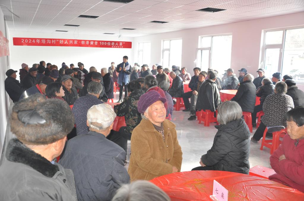 2024年12月5日,为弘扬中华民族尊老、敬老、爱老的传统美德,倡导塔沟村村民自觉做好人、行善事、立好家、建家风,让“好人兴家文化”温暖地植入人们心田,下沉工作队携手益善行公益组织志愿服务队,在塔沟村新建的党群服务中心,开展了“好人兴家、敬老爱老”主题敬老宴活动,切实为塔沟村老年人群体办实事、办好事。
