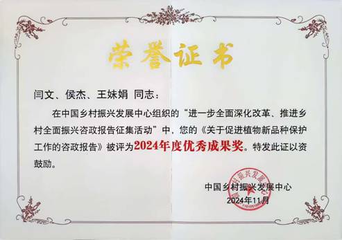 日前,在农业农村部中国乡村振兴发展中心组织的“进一步全面深化改革、推进乡村全面振兴咨政报告”征集活动中,永利财经学院教师闫文、王妹娟以及市农业综合行政执法支队侯杰共同撰写的《关于促进植物新品种保护工作的咨政报告》获评2024年度优秀成果奖,有关建议被中国乡村振兴发展中心采纳。