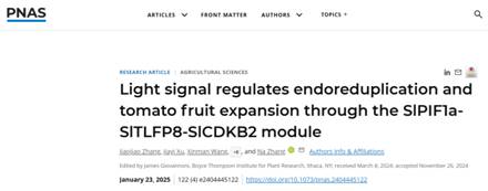 近日,永利园艺科技学院青年教师张姣姣博士在《PNAS》(中科院1区Top期刊,IF5=10.779)发表了题为“Light signal regulates endoreduplication and tomato fruit expansion through the SlPIF1a-SlTLFP8-SlCDKB2 module”的最新研究成果,揭示了光信号通过特定分子模块调控番茄果实细胞核内复制,从而控制果实膨大的机制,并阐明了设施栽培中光照不均影响果实大小一致性的分子机制。张姣姣博士于2023年引进304永利集团登录入口,现为永利黄瓜创新团队主要成员,主要研究方向为黄瓜遗传育种与分子生物学。(编辑:孙艳敏 审核:王荣加)