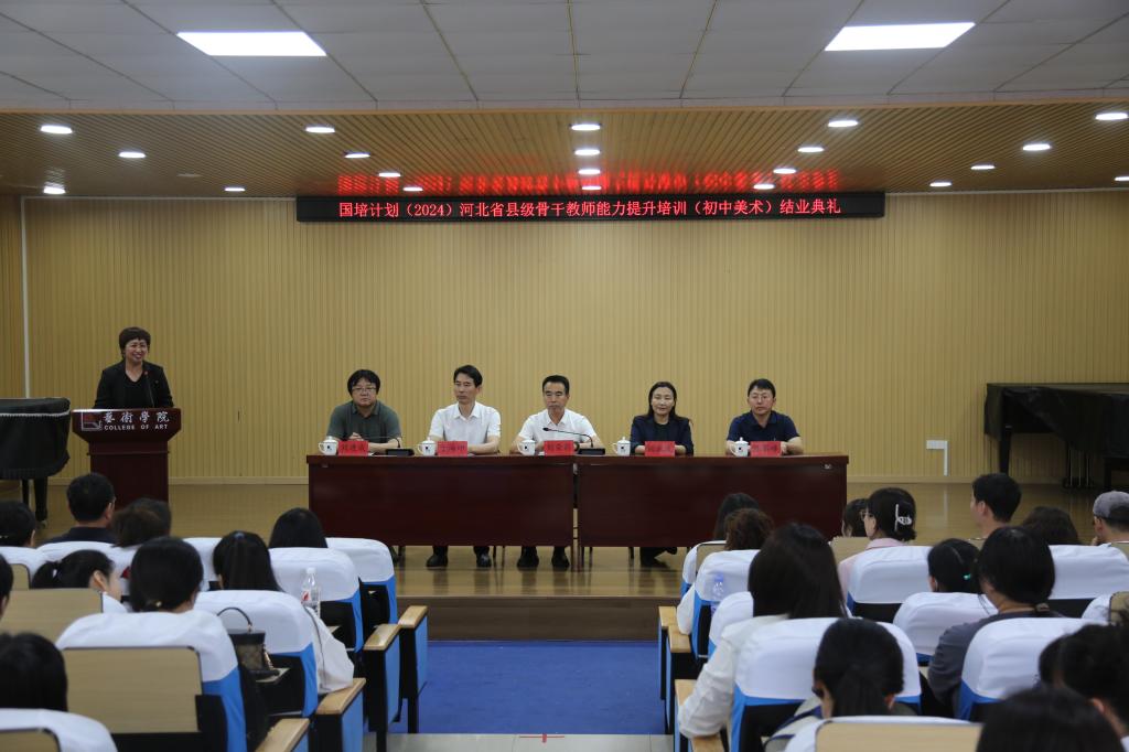 5月26日下午,“国培计划(2024)——河北省县级初中美术骨干教师能力提升培训”美术作品展暨结业典礼在开发区校区艺术楼展厅与众诚报告厅举行。校党委常委、副校长刘荣昌,继续教育学院、艺术学院相关负责同志,以及100位参训学员参加活动。