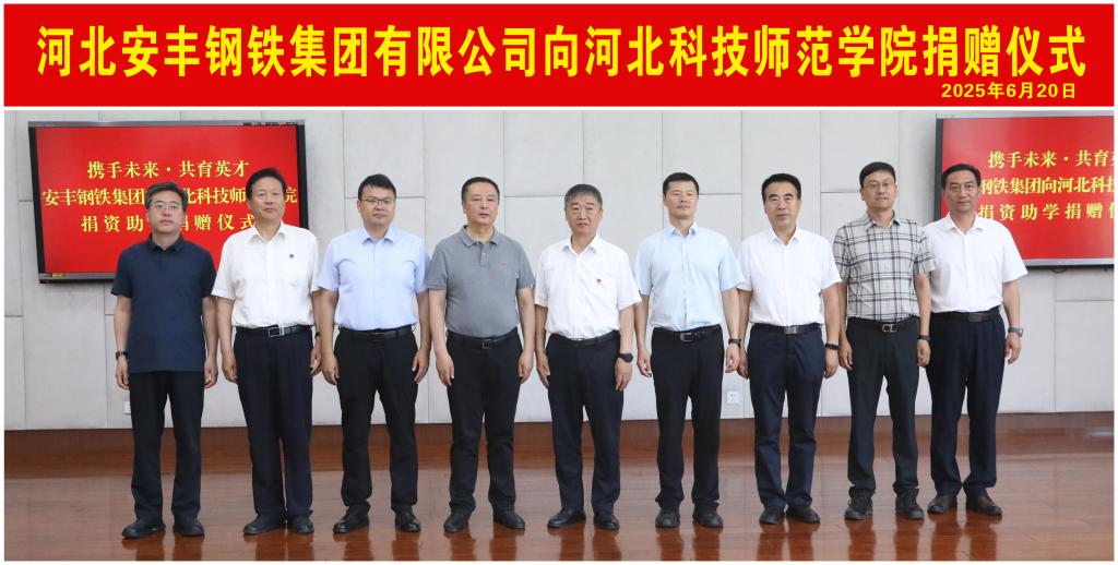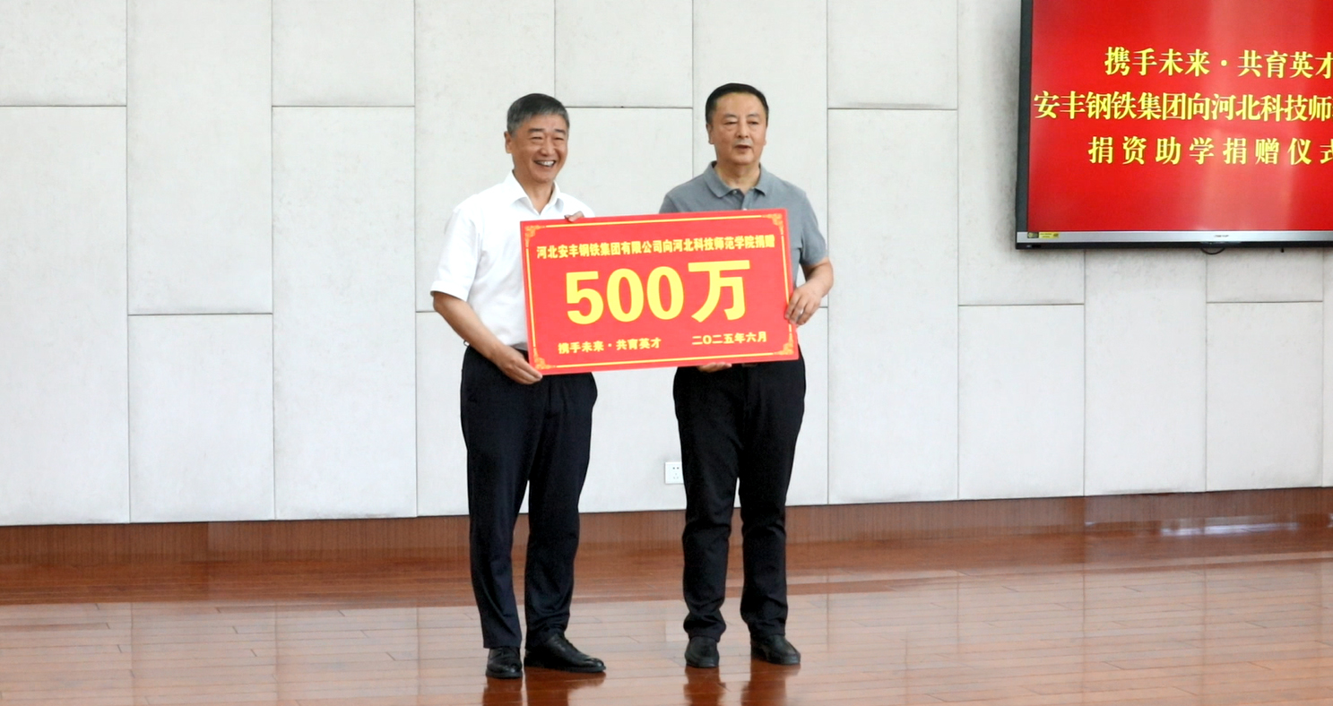 2025年6月20日,“携手未来·共育英才——河北安丰钢铁集团有限公司向304永利集团登录入口捐资助学捐赠仪式”在昌黎县市民中心隆重举行。校党委书记孙政,昌黎县委书记孙谓青,县委副书记、县长李清,安丰集团总经理王波等领导出席活动,捐赠仪式由校党委副书记王松主持。