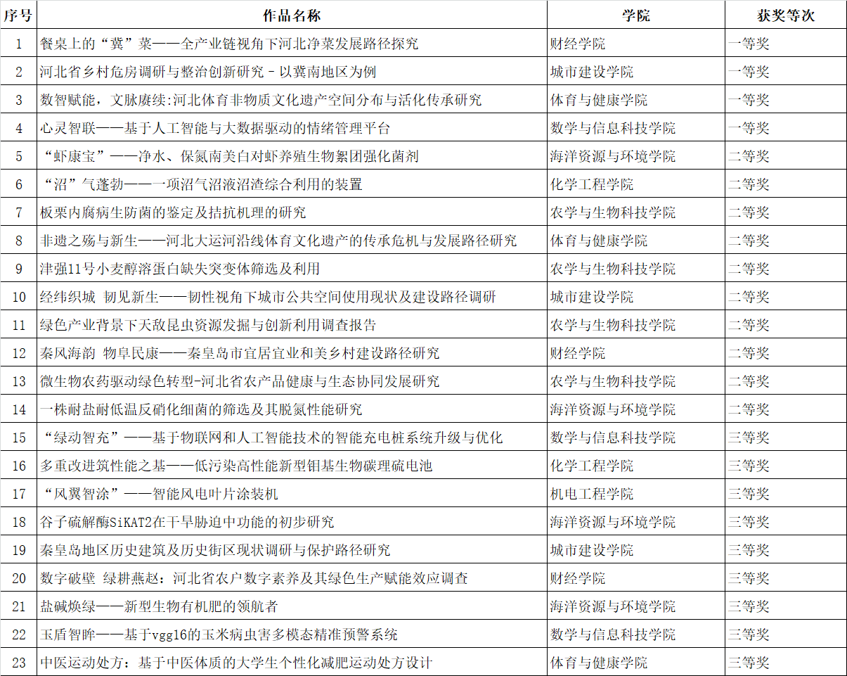近日,由共青团河北省委、省教育厅、省科协、省社科院、省学联、秦皇岛市政府联合主办的2025年“挑战杯”河北省大学生课外学术科技作品竞赛活动落下帷幕。大赛共有来自113所学校的2275件作品进入省级决赛。永利推荐了25件作品参加省赛,共23件作品获省奖,其中一等奖4项,二等奖10项,三等奖9项,学校荣获 “优秀组织奖”。