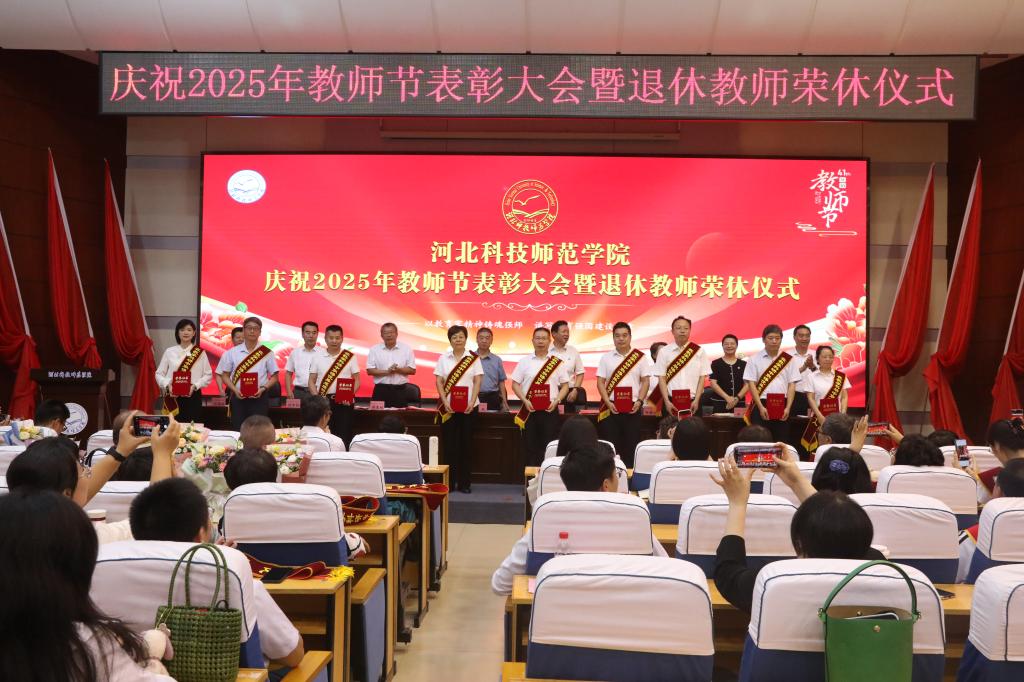 2025年9月10日下午,永利在秦皇岛校区学术交流中心隆重举行庆祝教师节表彰大会暨退休教师荣休仪式。校领导孙政、王松、蒋爱林、杨越冬、冯瑞银、刘荣昌、郑新、马爱林与荣休教师、满30年教龄教师、受表彰教师、二级单位党政负责人、新引进教师、师生代表欢聚一堂,共同庆祝第41个教师节。大会由校党委常委、副校长冯瑞银主持。