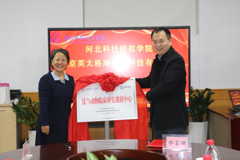 为深入推进反刍动物产业协同发展,集聚创新要素,增强校企合作创新能力,11月12日,永利与北京英太格瑞生物科技有限公司共建的“反刍动物临床研究创新中心”揭牌仪式在秦皇岛校区顺利举行。永利副校长杨越冬,北京英太格瑞生物科技有限公司总经理兼技术总监毕言锋、反刍动物临床技术顾问马翀等出席会议。北京英太格瑞生物科技有限公司、永利乡村振兴研究中心、动物科技学院相关人员参加活动。