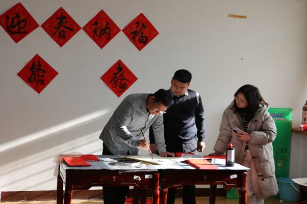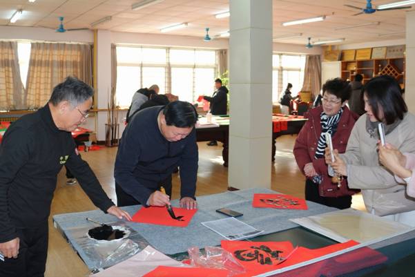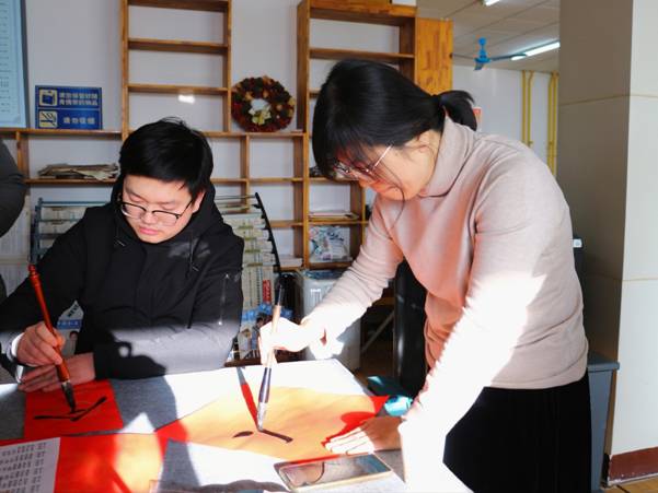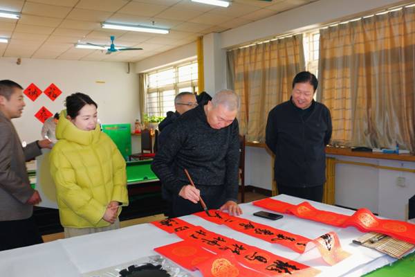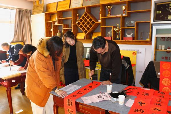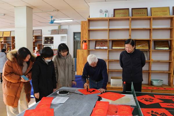 在春联文化传承环节,与会者共同回顾了春联的发展历程。从周代桃符驱邪避灾的古老传统,到五代后蜀国君孟昶“新年纳余庆,嘉节号长春”这一公认最早的春联雏形,千年的文化传承在笔墨间流淌。王松副书记强调,此次活动是学校深化“科师·家”文化品牌建设的重要实践,通过书画艺术传递人文关怀,将思政教育融入笔墨丹青。