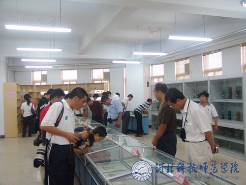 图为刘春延场长一行在永利动物标本馆参观考察