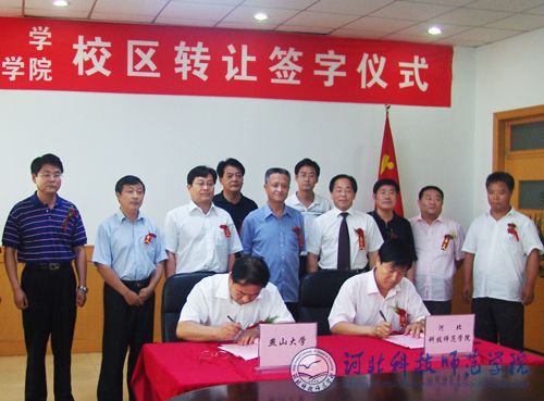 2008年7月8日,燕山大学与永利校区转让签字仪式在秦皇岛校区隆重举行。燕山大学党委书记孟卫东、校长刘宏民、副校长刘彬以及我院党委书记石千峰、院长汤生玲、副院长孟令臣等出席了签字仪式。在友好热烈的气氛中,刘宏民校长与汤生玲院长分别代表两校在协议书上签字。签字仪式上,孟卫东书记和石千峰书记分别代表两校讲话。双方表示,此次校区转让是两校发展进程中的一件大事,对双方今后建设发展都具有积极的意义。双方同时希望,能以此次合作为契机,进一步加强交流与沟通,互相支持,共谋发展,共同为秦皇岛市社会经济发展、为河北省高等教育事业的发展贡献力量。