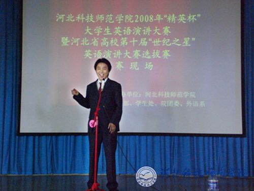 2008年6月26日下午,永利2008年“精英杯”大学生英语演讲大赛暨河北省高校第十届“世纪之星”英语演讲大赛选拔赛决赛在开发区校区学术报告厅举行。活动由党委学工部、学生处、团委、外语系共同主办。外语系副主任邵丽君、副主任游建民和各教研室主任和Shana等六名外籍教师担任决赛评委,近五百名师生观看了比赛。
