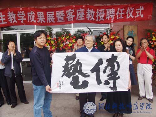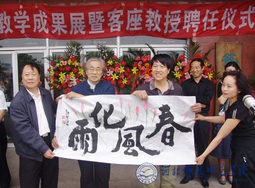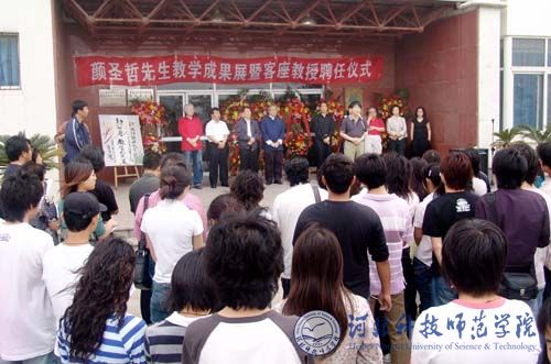 2008年6月6日上午,颜圣哲先生教学成果展暨客座教授聘任仪式在永利开发区校区举行。秦皇岛市政府台湾事务办公室主任廉茹艳、副主任董景龙,秦皇岛市文联主席牛兴国,秦皇岛市文联副主席、美术家协会主席吴桂平,秦皇岛市文联副主席、中国画研究会会长张国兴,秦皇岛市广播电视局副局长高瑞华,我院党委副书记、院长汤生玲,党委副书记陈继生,学院党委宣传部、统战部部长赵宗宝,艺术系主任张海燕、党总支书记李玉华、副主任刘进成及永利艺术系师生200余人参加了教学成果展暨客座教授聘任仪式。