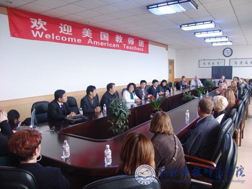 5月3日下午5:30,汤生玲院长在永利秦皇岛校区11楼1号会议室举行了欢迎仪式,并召开座谈会。汤生玲院长对美国ELT组织教师团一行的到来表示热烈的欢迎和衷心的感谢。汤院长简要介绍了永利所处滨海旅游城市,同时也是2008年北京奥运会的协办城市—秦皇岛概况和永利现状及未来发展情况,并预祝美国ELT组织所有成员在永利开展为期一周的英语教学周活动取得圆满成功。
