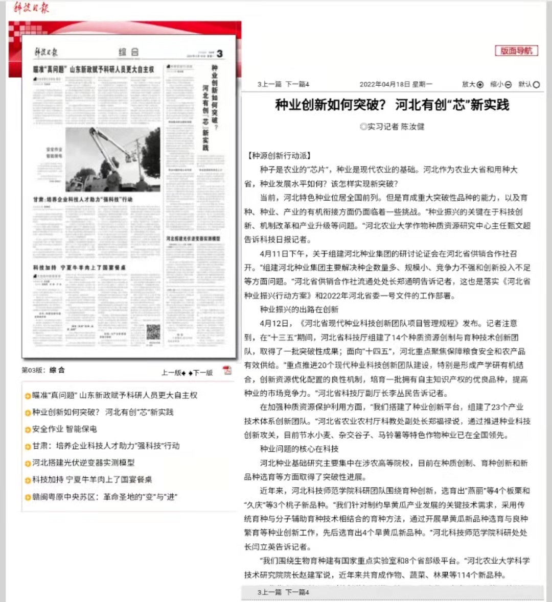 《科技日报》:种业创新如何突破? 河北有创“芯”新实践【科研处】