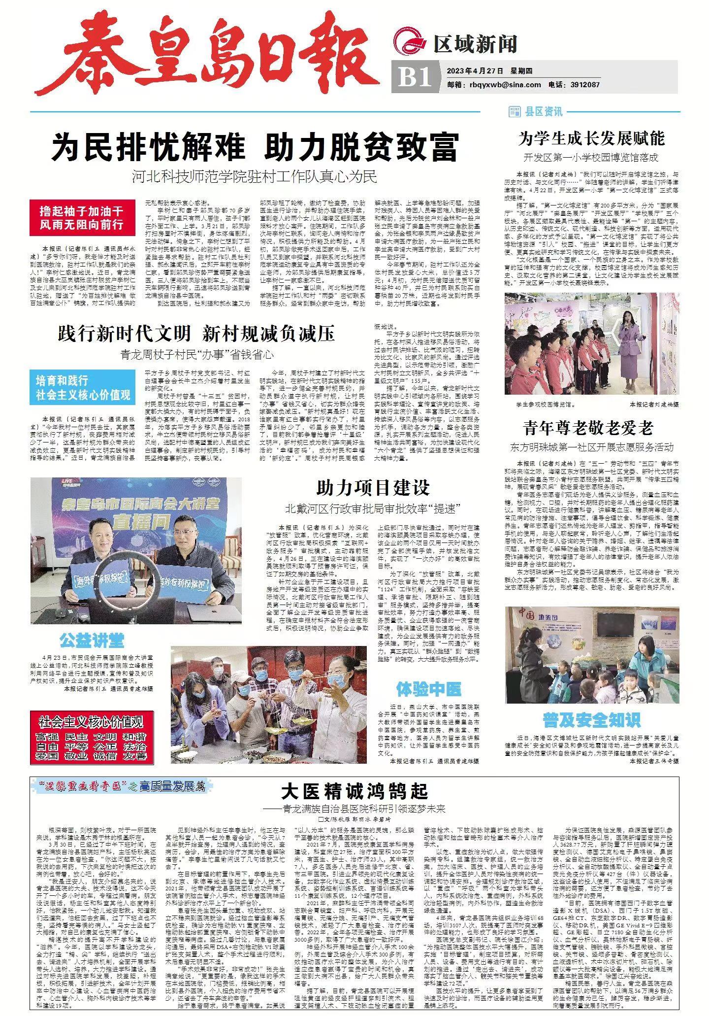 2023年4月27日,《秦皇岛日报》以《为民排忧解难 助力脱贫致富 304永利集团登录入口驻村工作队真心为民》为题,报道了永利驻村工作队在青龙满族自治县大巫岚镇张庄村帮助脱贫户就医问诊,展现了排忧解难、真心为民的无私奉献精神。全文如下: