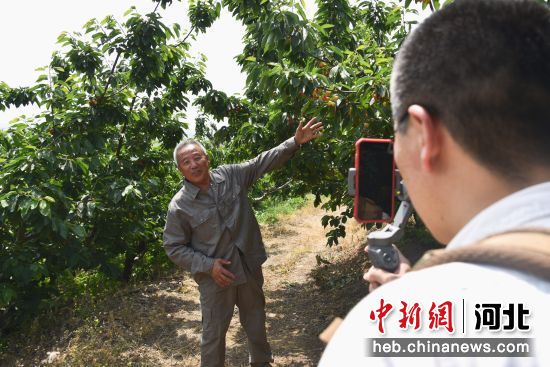 图为本地网红直播推介杜庄镇樱桃。 刘若雨 摄