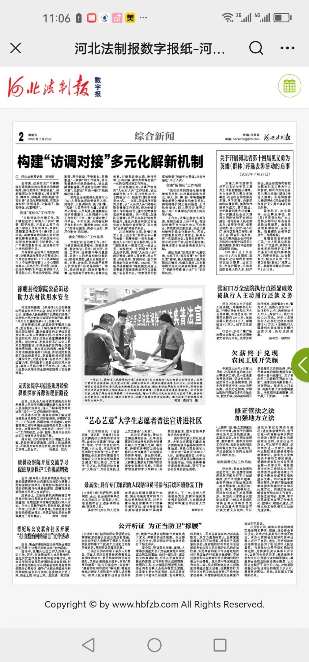 河北法制报:“艺心艺意”大学生志愿者普法宣讲进社区