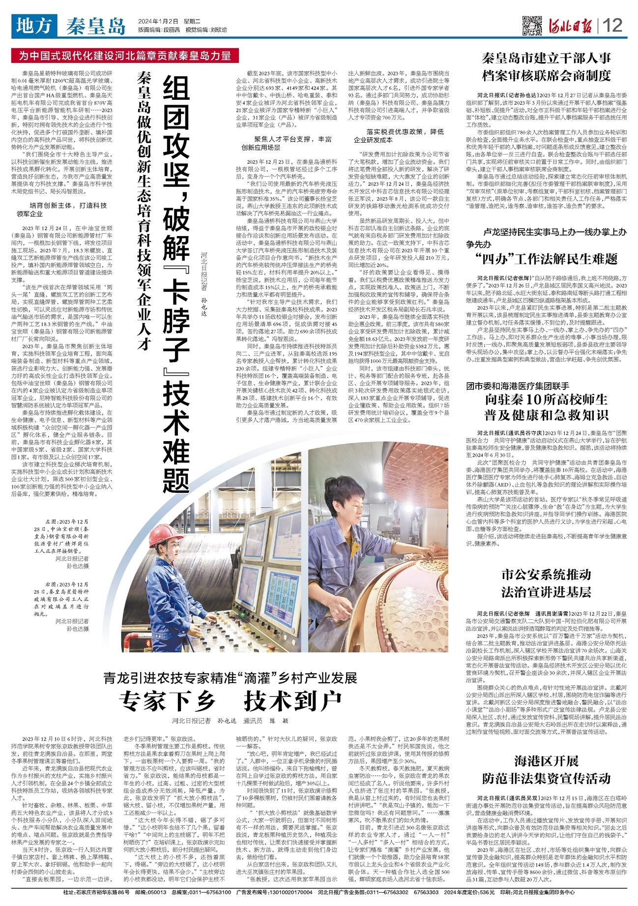 2024年1月2日,《河北日报》第12版以《青龙引进农技专家精准“滴灌”乡村产业发展——专家下乡 技术到户》为题,报道永利张京政教授带领团队助力乡村产业发展。