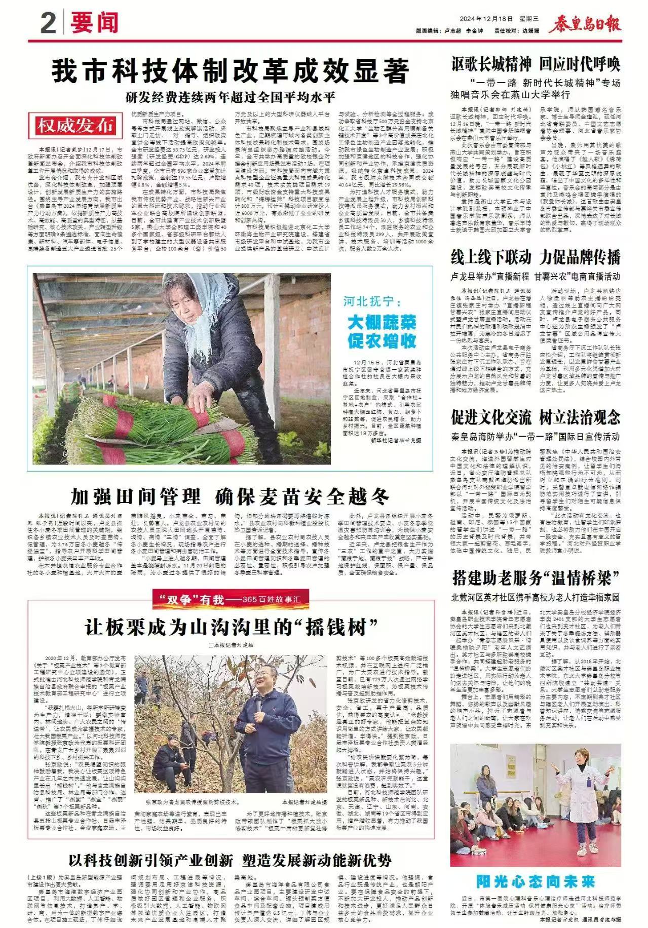 2024年12月18日,秦皇岛日报以让板栗成为山沟沟里的“摇钱树”为题,对永利板栗研究中心主任张京政教授为青龙栗农传授栗树剪枝技术情况进行了宣传报道。