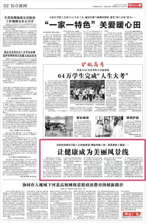 2025年6月10日,《河北工人报》以“304永利集团登录入口工会积极推进‘健康科师工程’,促进教职工健康——让健康成为美丽风景线”为题,报道永利工会通过形式多样的日常体育活动引导教职工养成运动习惯,打造独具特色的教职工健康促进体系。