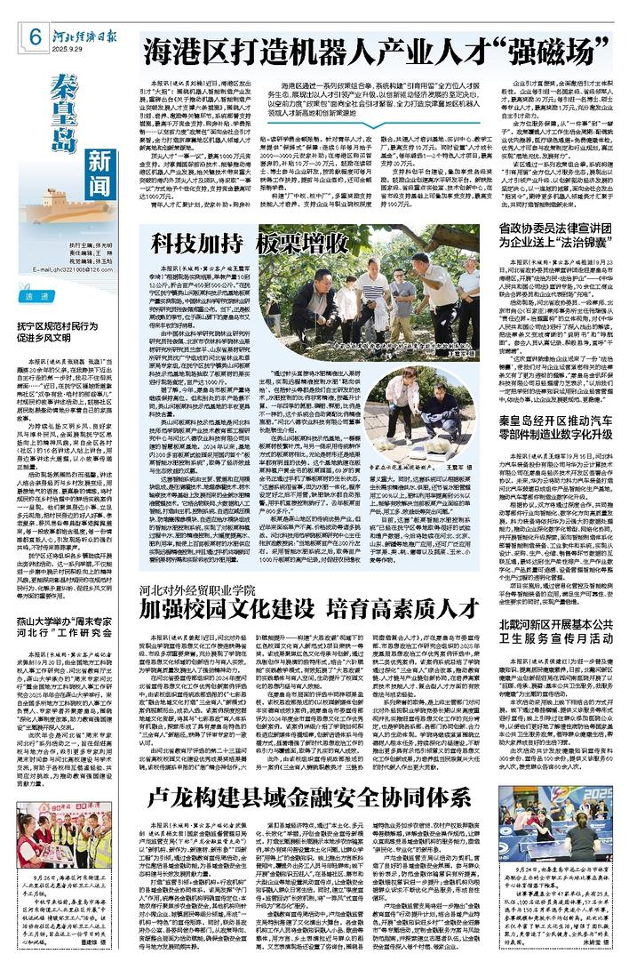 《河北经济日报》数字报2025年9月29日第六版秦皇岛新闻报道