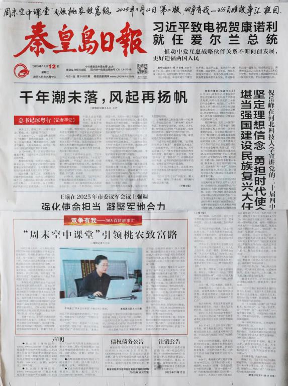 11.122025《秦皇岛日报》:“周末空中课堂”引领桃农致富路【党委宣传部】