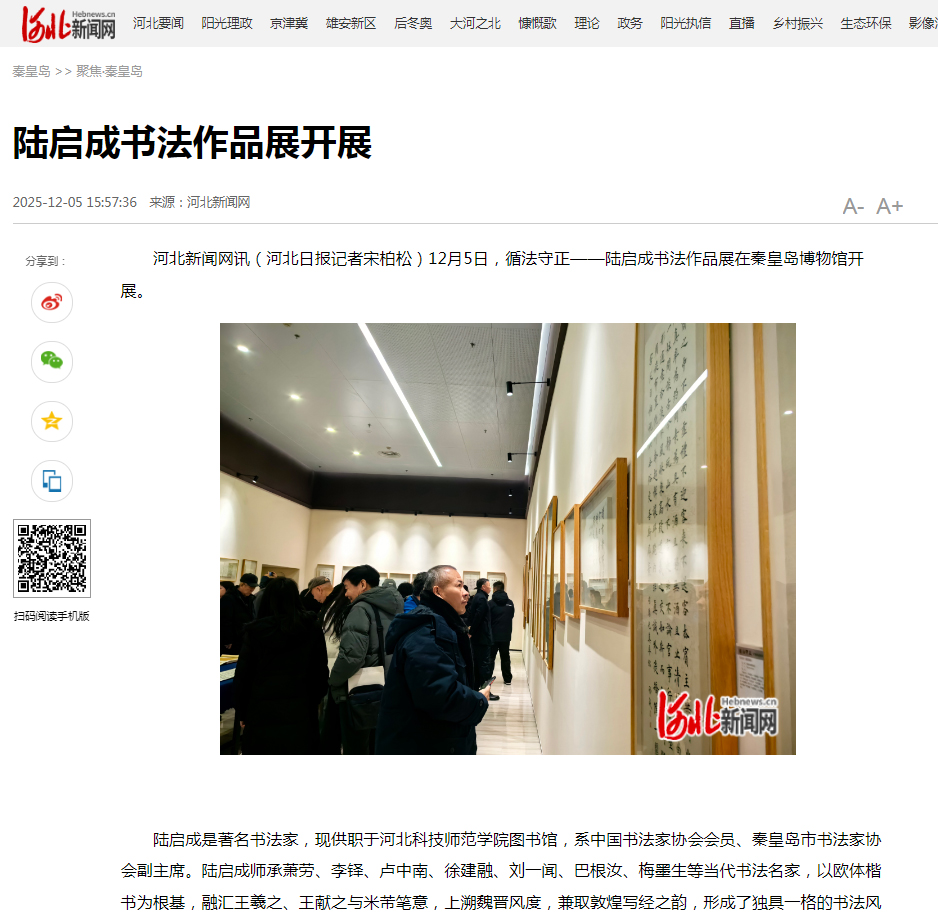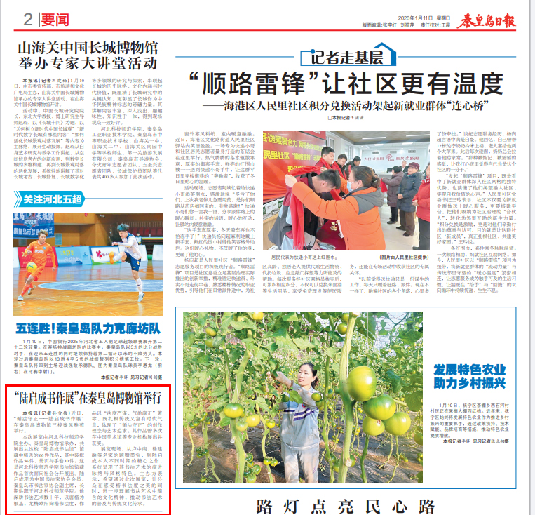 01.132026《秦皇岛日报》:“陆启成书作展”在秦皇岛博物馆举【党委宣传部】
