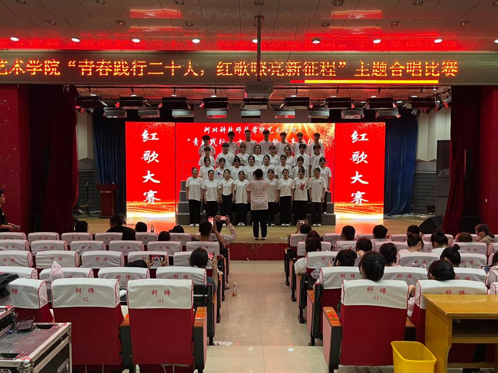 活动中,每个班级组成一个合唱团,《科技师院人之歌》为必选曲目,另有一首红歌作为自选曲目。同学们衣着统一、队列整齐、歌声嘹亮、配合默契,在指挥的引领下,用心用情演绎了《科技师院人之歌》、《团结就是力量》、《国家》、《爱我中华》、《强军战歌》、《灯火里的中国》等曲目,唱出了浓烈的爱国爱党爱校情怀。经过评委会打分,最终音乐学2201班荣获一等奖,环境设计2201、美术学2202班荣获二等奖,舞蹈表演2201、美术学2201、视觉传达2201班获得三等奖,音乐学2202班荣获最佳表演奖。