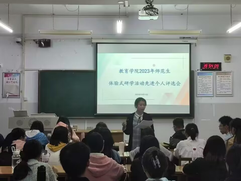 2023年10月11日,教育学院组织开展了“师范生体验式研学”活动先进个人评选会。经过初选,共14名候选人参加了评选,全体辅导员老师担任了评委。
