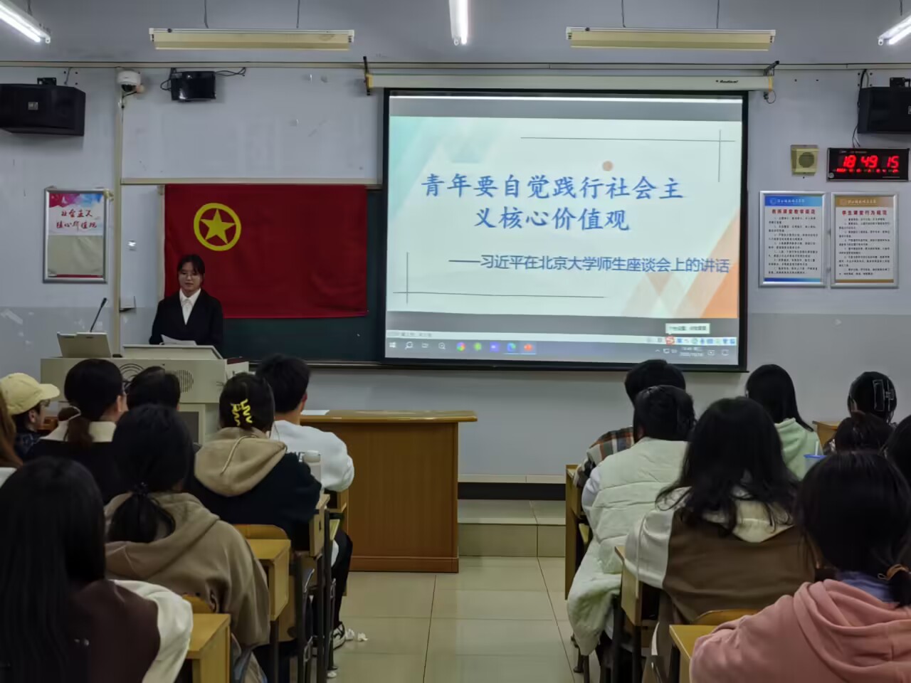 交流会上,团员青年们在主持人的带领下,集中研读了习近平总书记在北京大学师生座谈会上的讲话《青年要自觉践行社会主义核心价值观》。研读过程中,团员青年们纷纷有感而发,团属干部代表魏佳苗同学表示:作为一名团学干部,必须拥有坚定的政治站位和过硬的政治理论素养,将自己的理想同祖国、民族的命运紧密联系在一起;必须沉下心来求真学问、练真本领,在不断学习、实践中充分挖掘自身潜力;必须坚持实事求是,知行合一,努力成为一名又红又专、德才兼备、全面发展的中国特色社会主义合格建设者和可靠接班人。青年代表何茹意同学表示:我们现在正处于新时代的重要发展时期,面临许多机遇的同时也对我们青年提出了新的要求。青年兴则国家兴,作为一名师范生,我们要明确历史赋予的使命,生逢其时,厚积薄发。作为学生干部,将发挥学生干部的先锋模范带头作用,做中国特色社会主义的传播者与践行者,为民族复兴添砖加瓦。(编辑:孙艳敏 审核:彭妍)