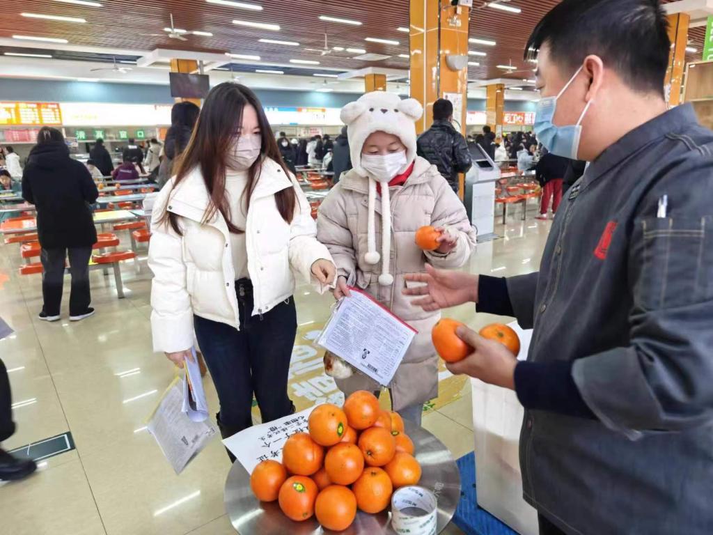近日,在冬至和研究生招生考试来临之际,大学生服务中心以“温情、温暖、温馨,成长、成才、成功”为主题,精心组织策划了为期两天的第二届“心想事“橙”活动,为3000名考研学生送上暖心橙子,用这份专属“橙”意祝福大家心想事“橙”、一战“橙”硕、马到“橙”功,由食堂工作人员将一份份祝福亲手逐一送达,暖心叮嘱学生“做好防护,增强抵抗力”,并祝福考研学子成功上岸。