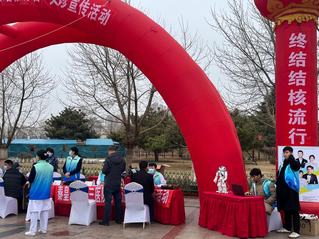 数学与信息科技学院海联创新基地机器人团队携带NAO机器人为义诊活动现场助力。大学生志愿者们利用专业知识设计了机器人讲解员,参与结核病防治宣传活动,并耐心解答群众提出的疑难问题和心中困惑,得到了现场群众的热烈欢迎和主办单位的一致好评。