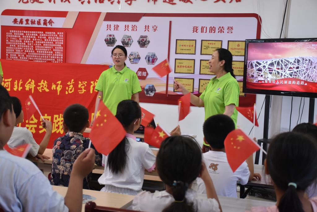 社区活动中,实践团的成员们为居民及中小学生开展了红色文化教育、勤俭节约、艰苦朴素教育、非遗文化、中华诗词文化等传统文化教育,引导社区少年儿童做追“光”的好少年,大学生们向社区少年儿童传播着中华民族上下五千年形成的以爱国主义为核心的伟大的创造精神、奋斗精神、团结精神、梦想精神及崇高的思想品德。在陈台子村,实践团开展“艺术墙绘邂逅美丽乡村”活动,以社会主义核心价值观、中华优秀传统美德作为艺术墙绘的创造素材,运用专业知识绘制特色墙绘图纸,对墙体进行考量,设计特色墙绘。