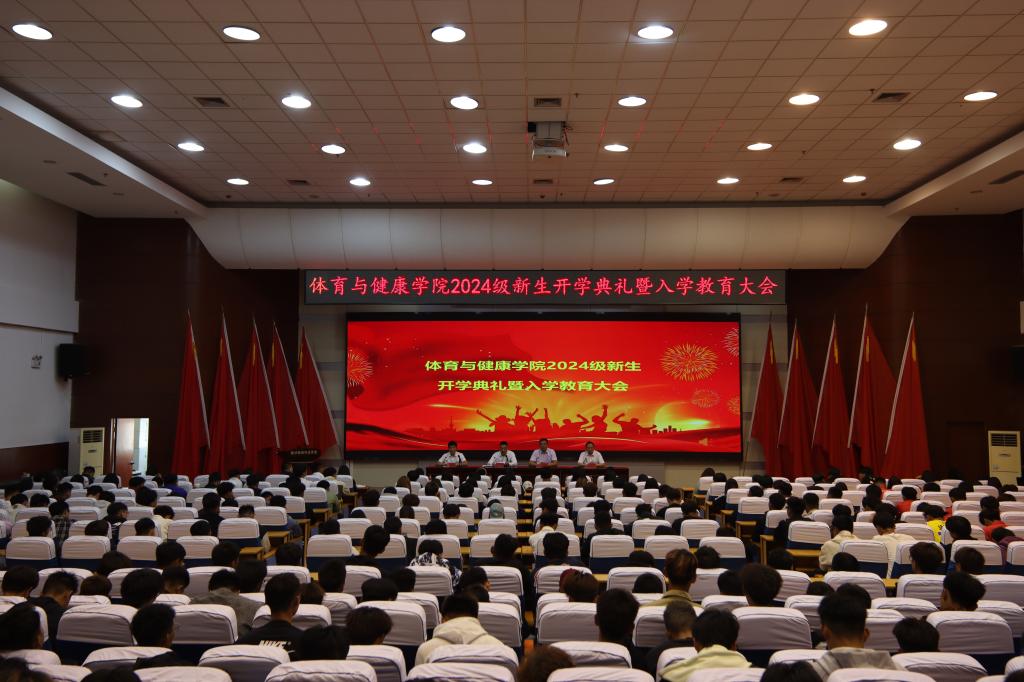 2024年9月21日,体育与健康学院举办2024级新生开学典礼暨入学教育大会。学院党政领导、办公室、学工办、各专业带头人、2024级新生班主任及全体本科生、硕士生新生参加典礼。
