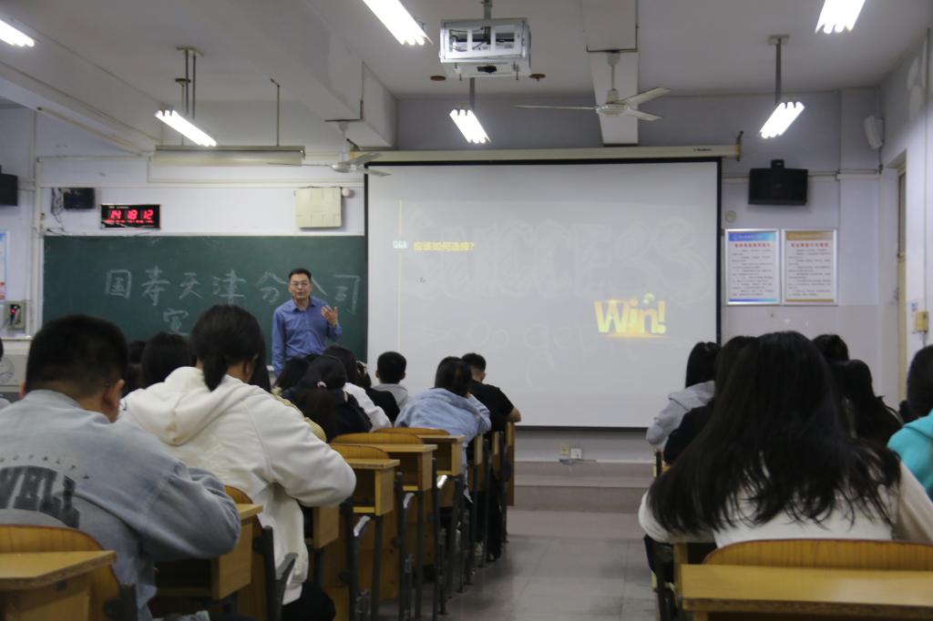在答疑解惑环节,訾云峰针对同学们提出的问题一一解答,使得同学们更加了解在中国人寿天津分公司的就业状况以及工资待遇等一系列问题。